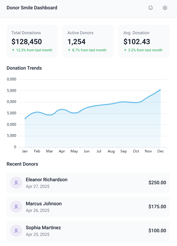 Our comprehensive donor management platform provides all the tools you need to track, manage, and grow your donor base.